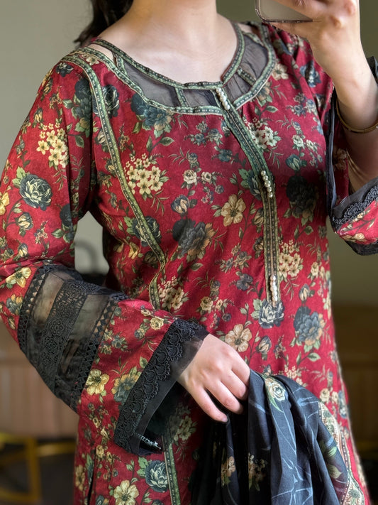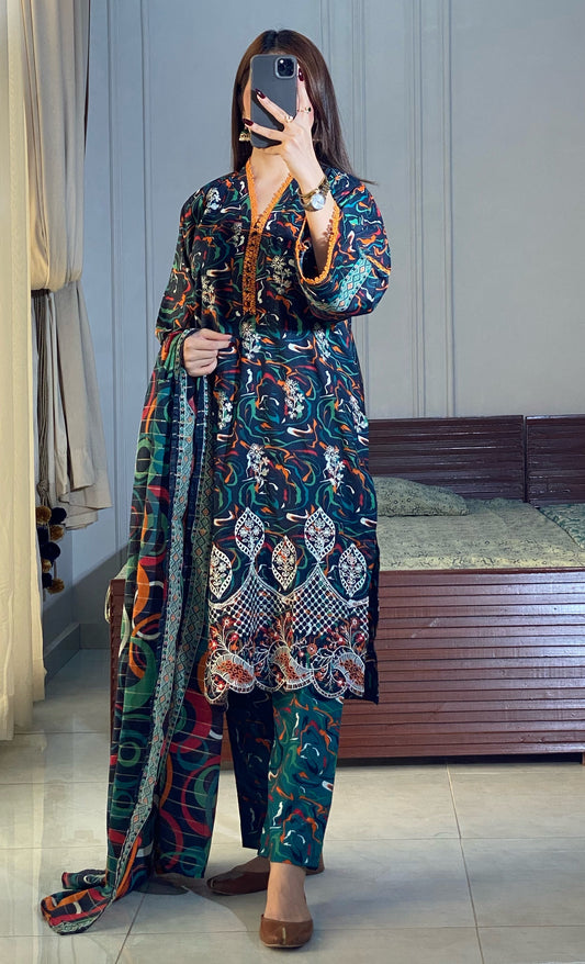 3 Piece - Lawn Bana Dora Stitched Dress-123