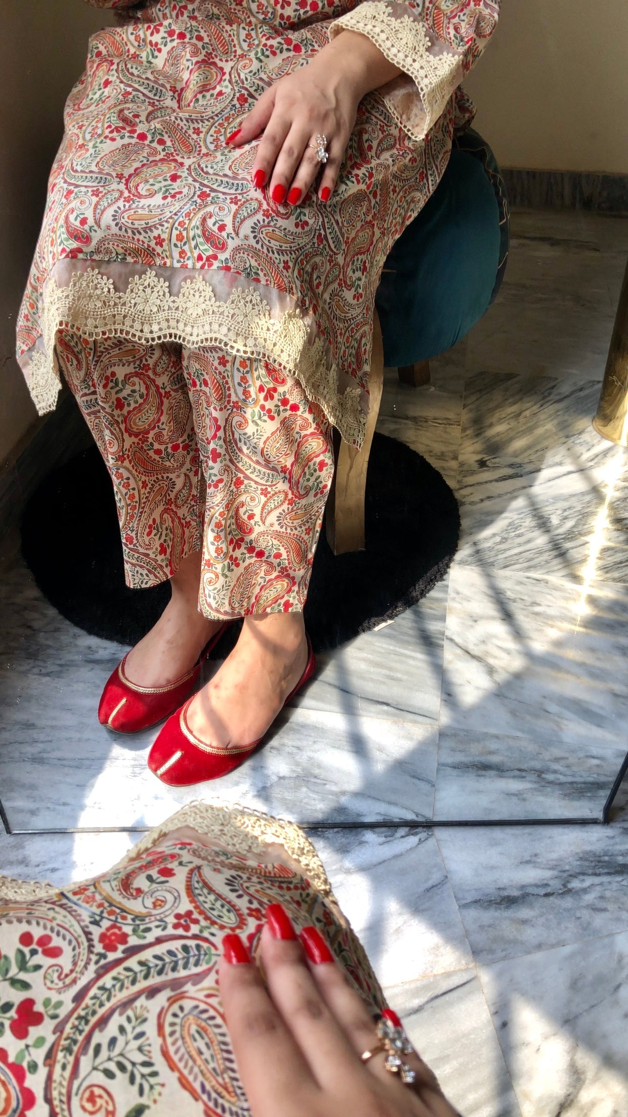 Crafted from premium lawn fabric, this suit feels as light and breezy as a summer day. The crisp white base provides the perfect backdrop for the whimsical blue florals, creating a look that's both elegant and fun.