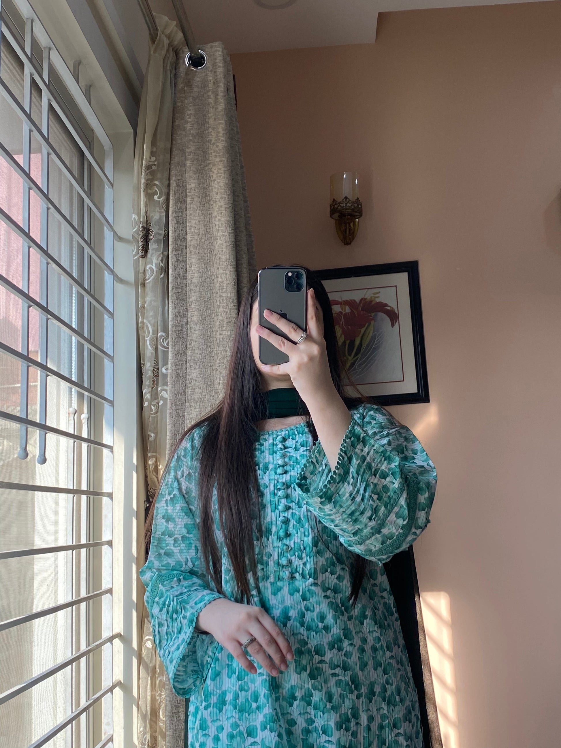 Shirt – Premium Bana Dora Lawn Printed Shirt with elegant Lace Neckline with front button detailing.