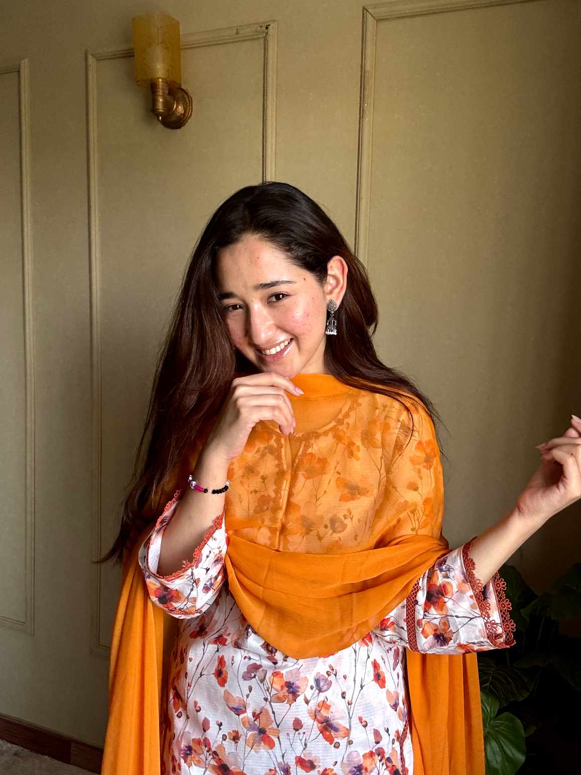 Stay stylish and comfortable with this beautiful women’s Lawn Printed dress. Made from soft, breathable fabric, it keeps you cool and fresh all day. This stylish ensemble features a long-length A-cut shirt with intricate lace detailing on the neck and sleeves. Paired with matching straight-cut trousers, the set offers a seamless, polished look. The elegant prints add a touch of charm, making it ideal for casual outings, gatherings, or everyday wear.