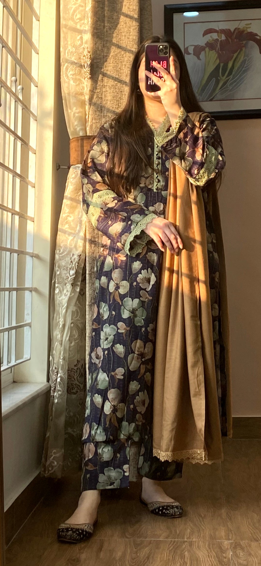 Shawl – Lace Work Dhanak Shawl, adding a touch of sophistication and warmth to the outfit.