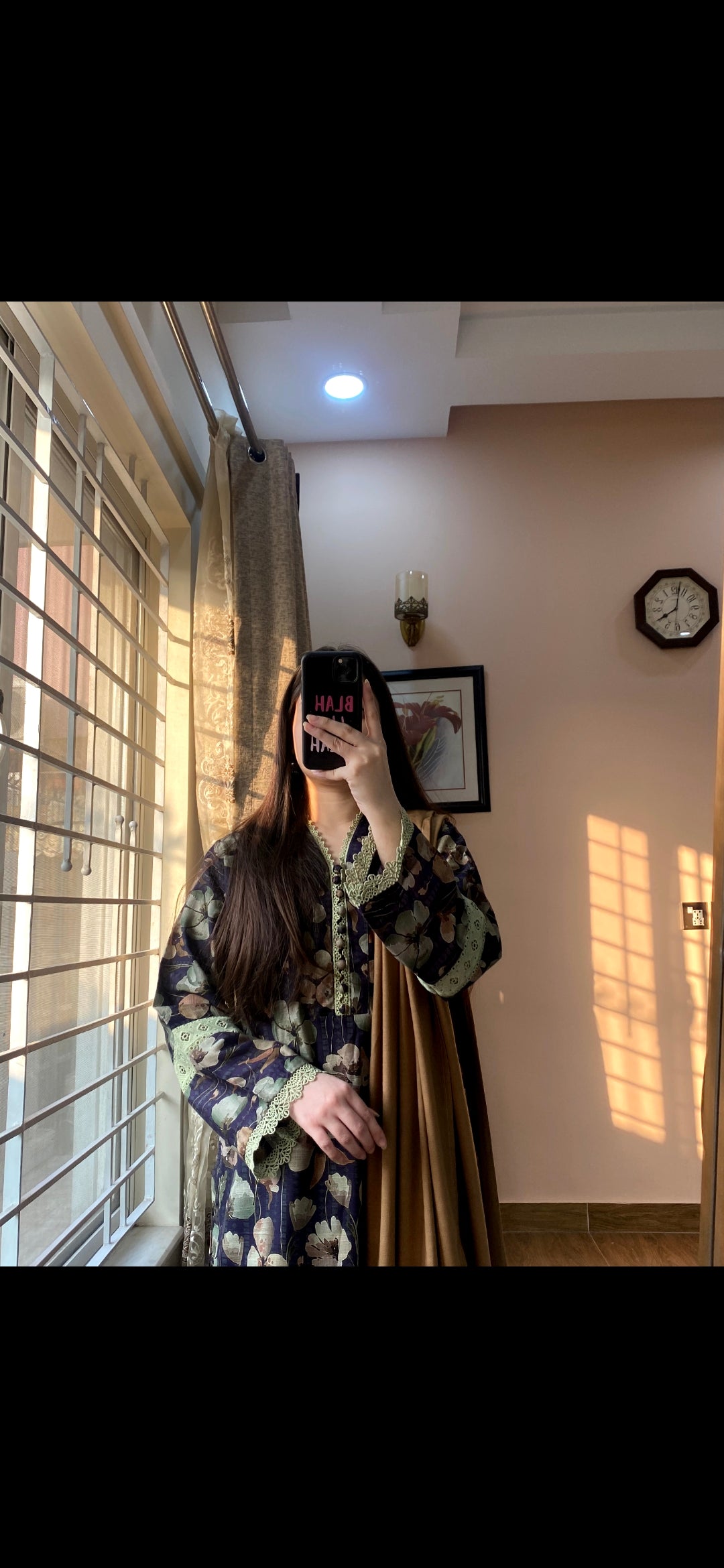 Shirt – Premium Slub Khaddar Printed Shirt with elegant Round Neckline with front button detailing.