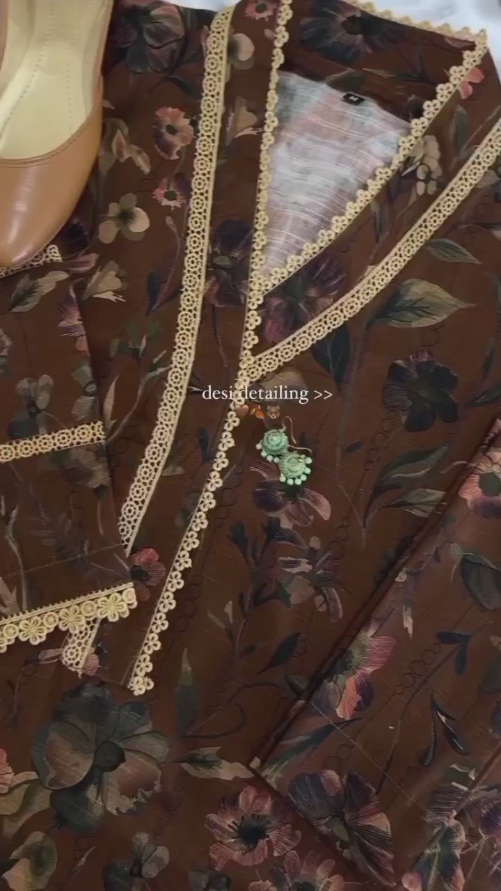 Shirt – Premium Slub Khaddar Printed Shirt with elegant Round Neckline.